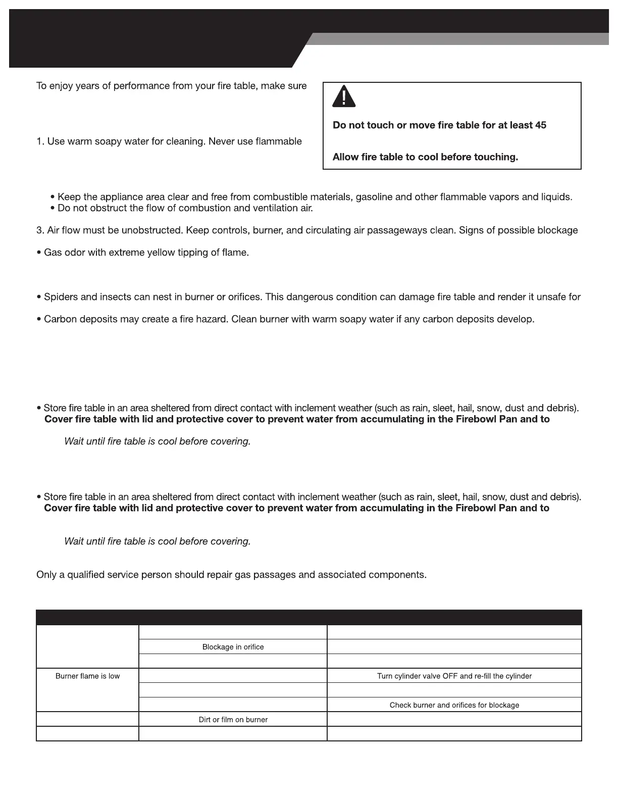 use. Clean burner holes by using a heavy-duty pipe cleaner. Compressed air may help clear away smaller particles.