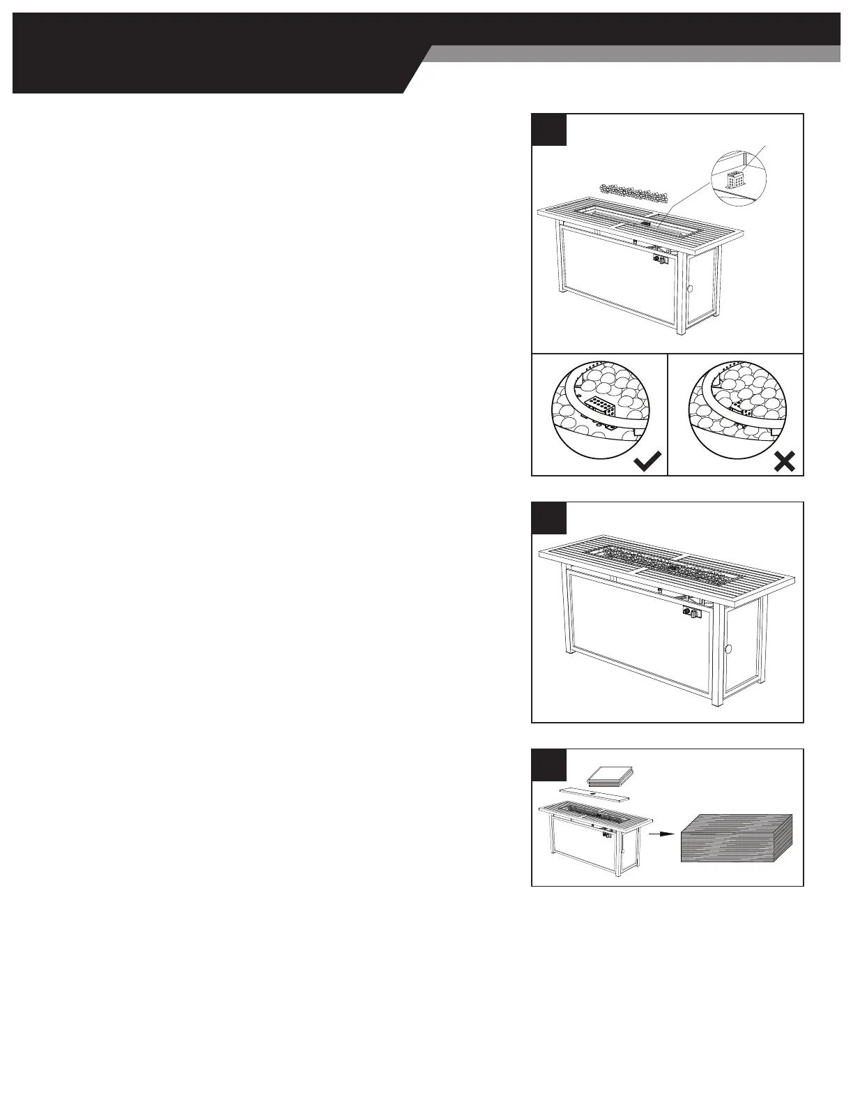 8. Fire table assembly is now complete. At the bottom of legs, there are four