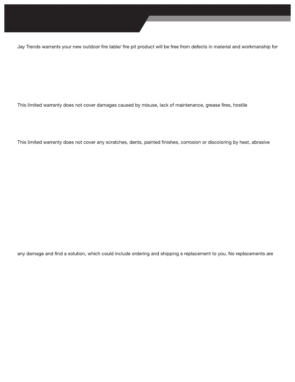 Jay Trends reserves the right to have its representative inspect any product or part prior to honoring any warranty claim.