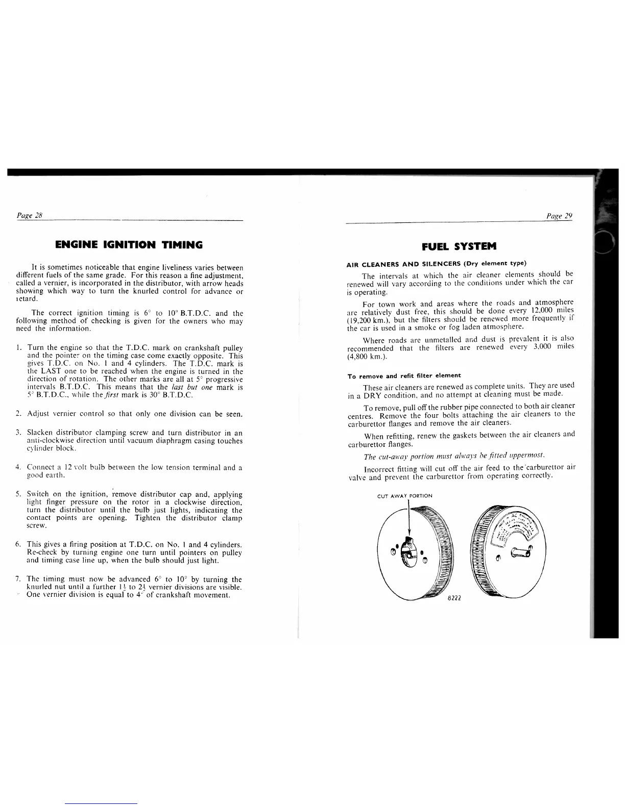Sunbeam Alpine V series - Ignition Timing and Fuel System; Engine Ignition Timing Procedure; Fuel System Air Cleaners