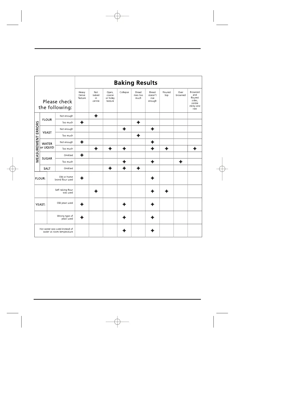 Sunbeam BM005 - Troubleshooting: Baking Results; Recipe Error Diagnostics