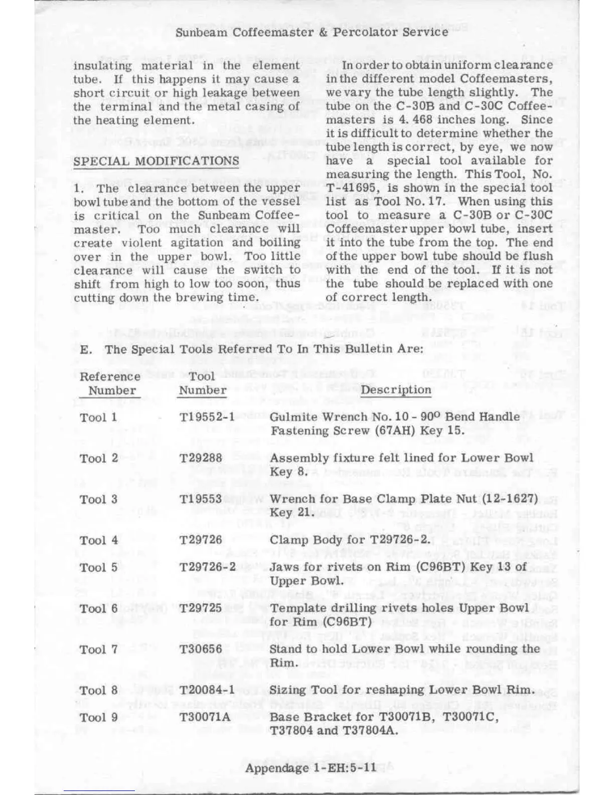 Sunbeam C30C - Special Tools