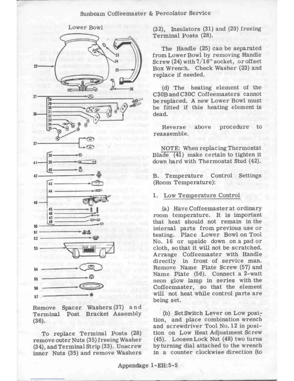 Sunbeam C30C - Temperature Control Settings; Low Temperature Control