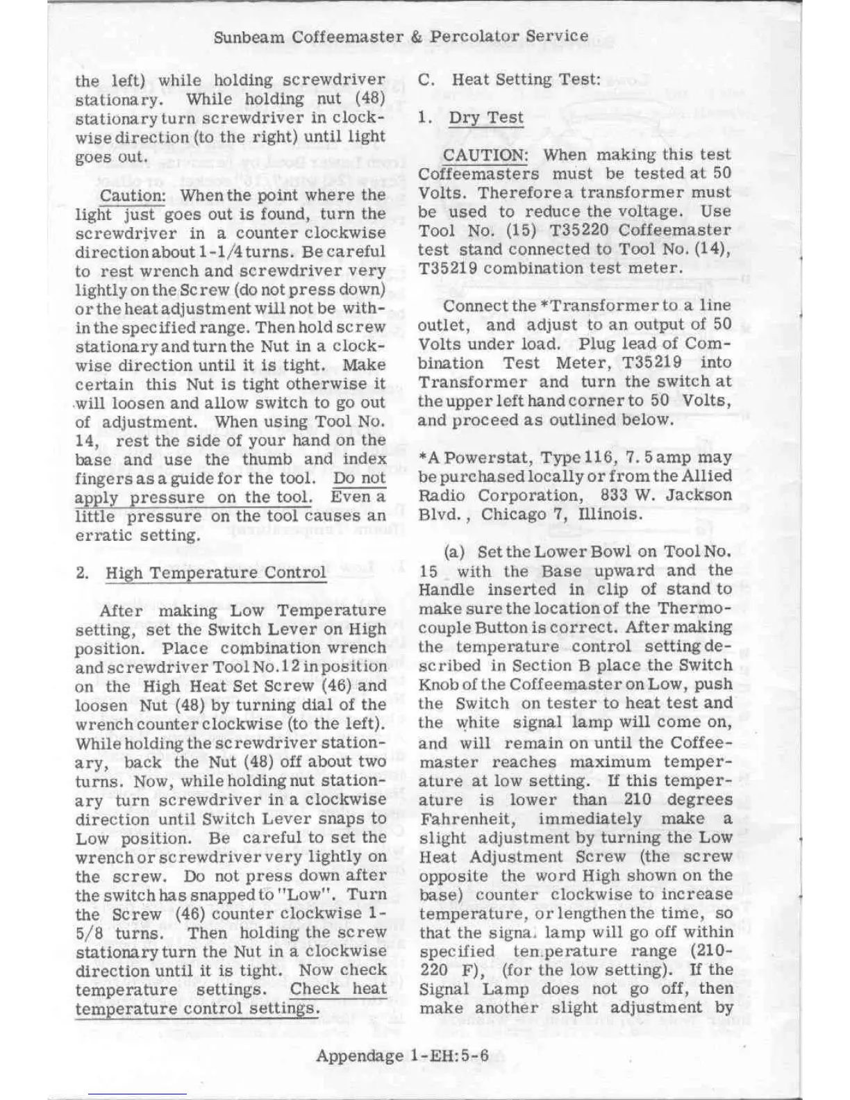 Sunbeam C30C - Heat Setting Test; Dry Test
