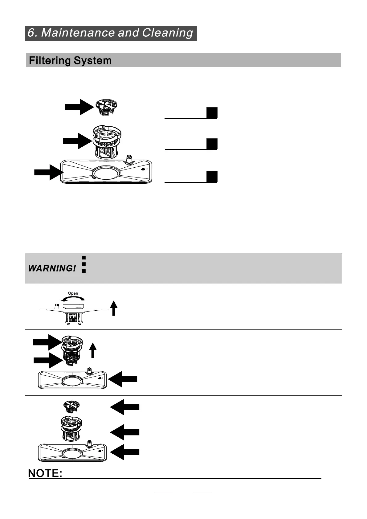 remove the larger food particles trapped in the filter after each wash cycle by rinsing the filter and cup under