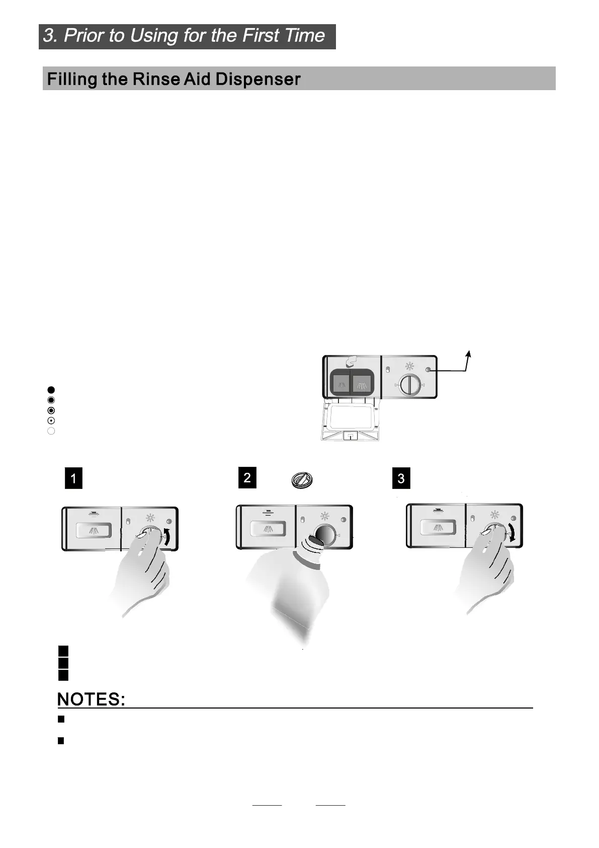 dispenser, open the cap and pour the rinse aid into the dispenser until the level indicator turns completely black.