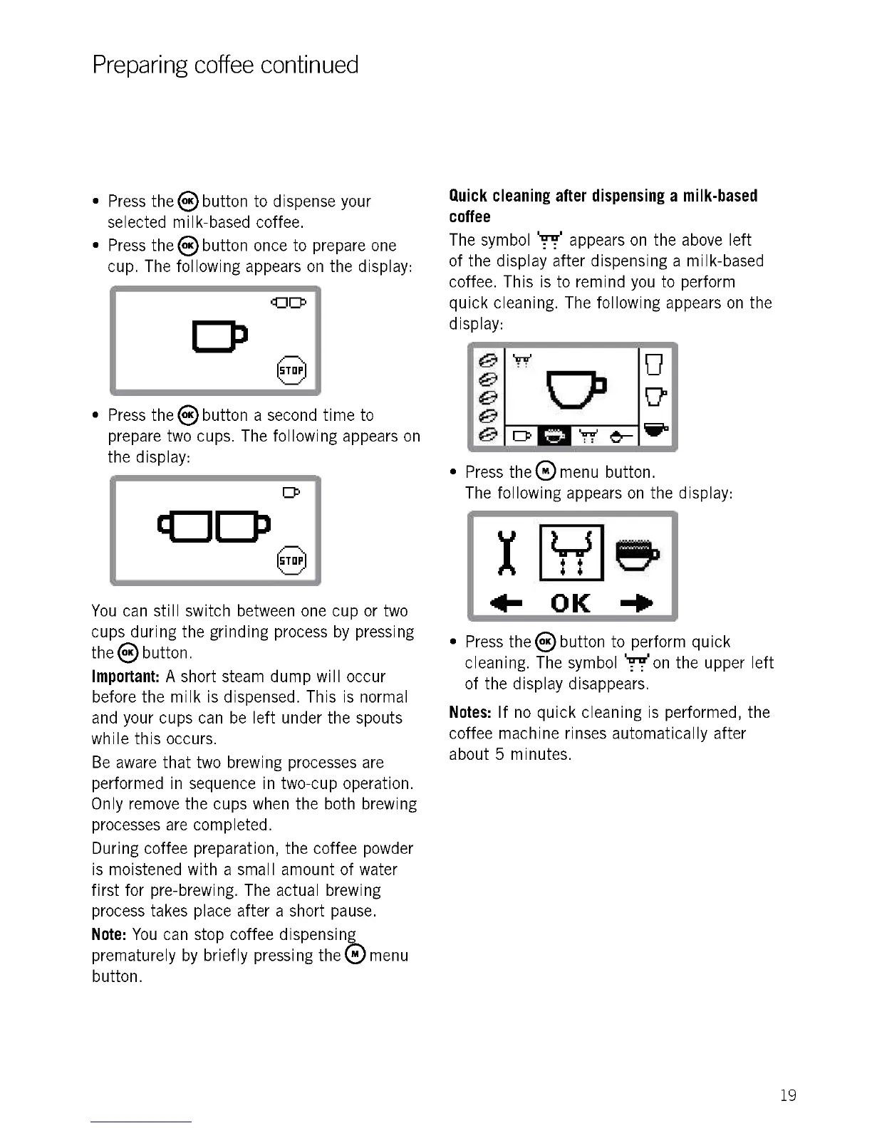 performed in sequence in two-cup operation.