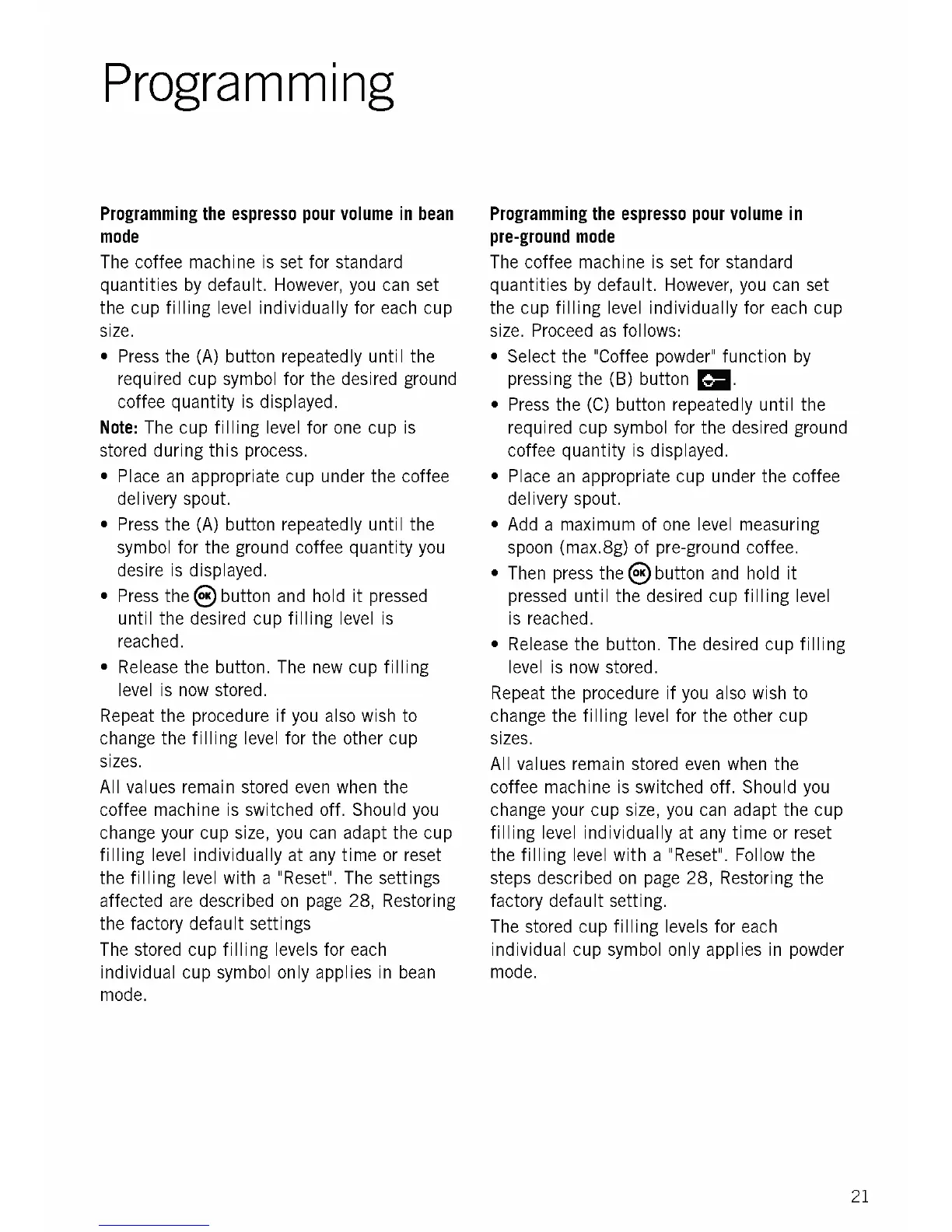 pressed until the desired cup filling level