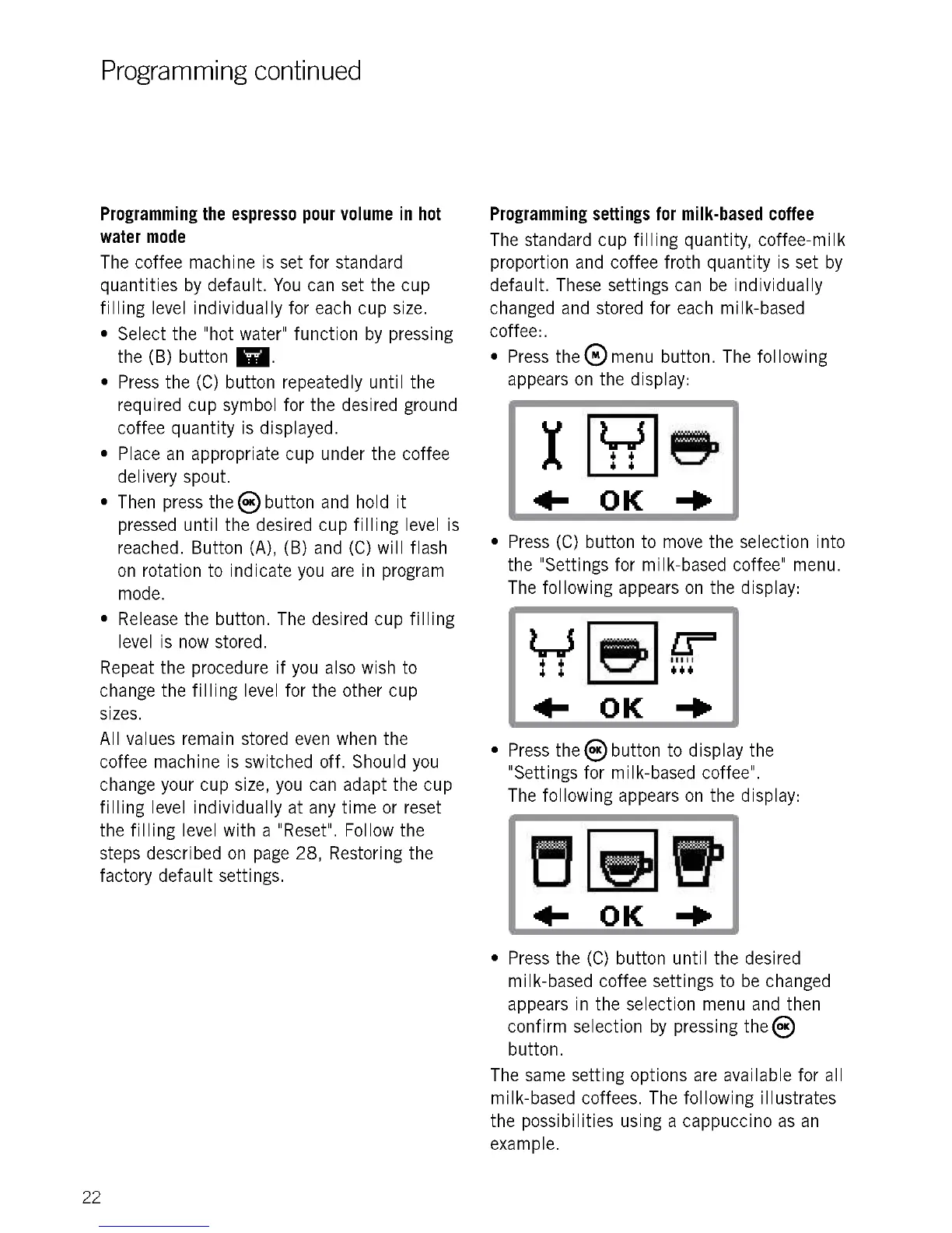 "Settings for milk-based coffee".