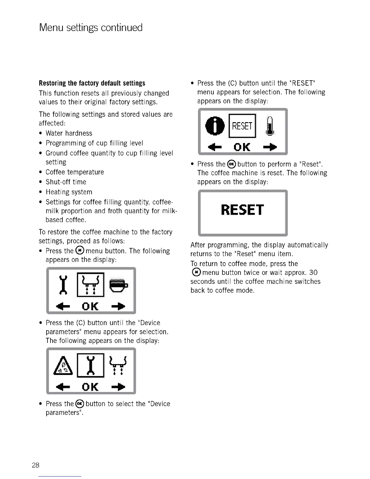 The coffee machine is reset. The following