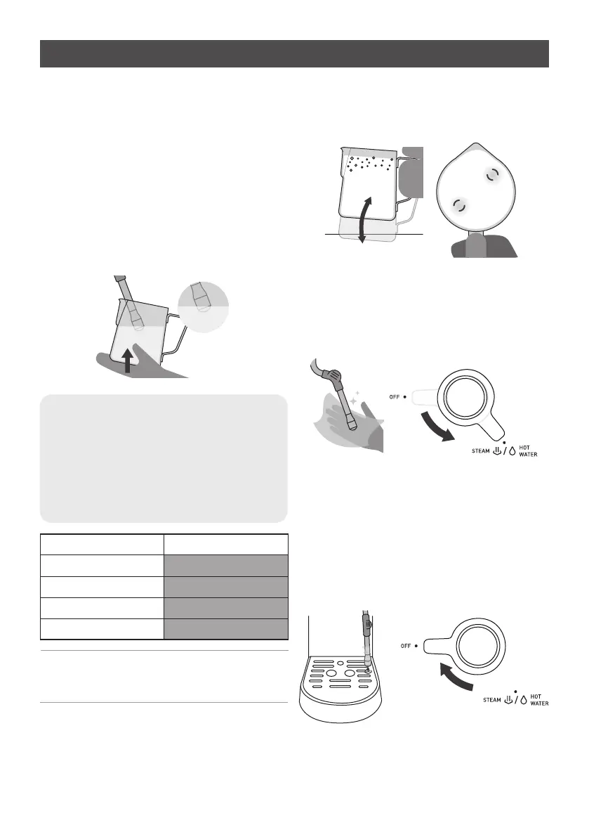 immerse the steam wand half way deep into