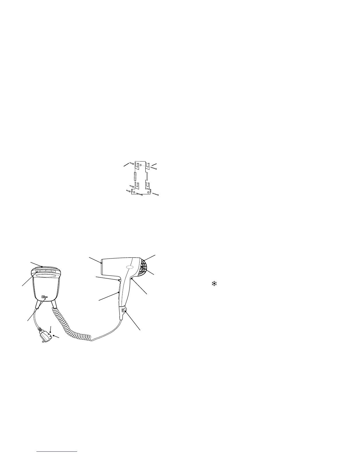 Le séchoir à cheveux ore trois niveaux de chaleur / de vitesse d’air. Pour contrôler les