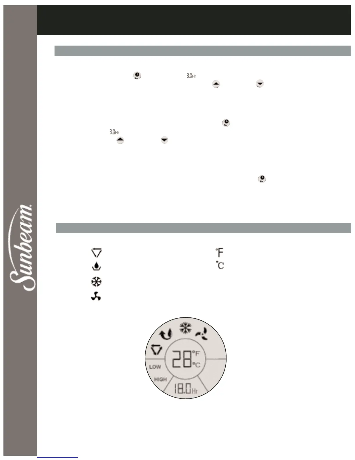When the unit is ON, press the Timer button, “ “ will flash in Timer Set Display Window and the