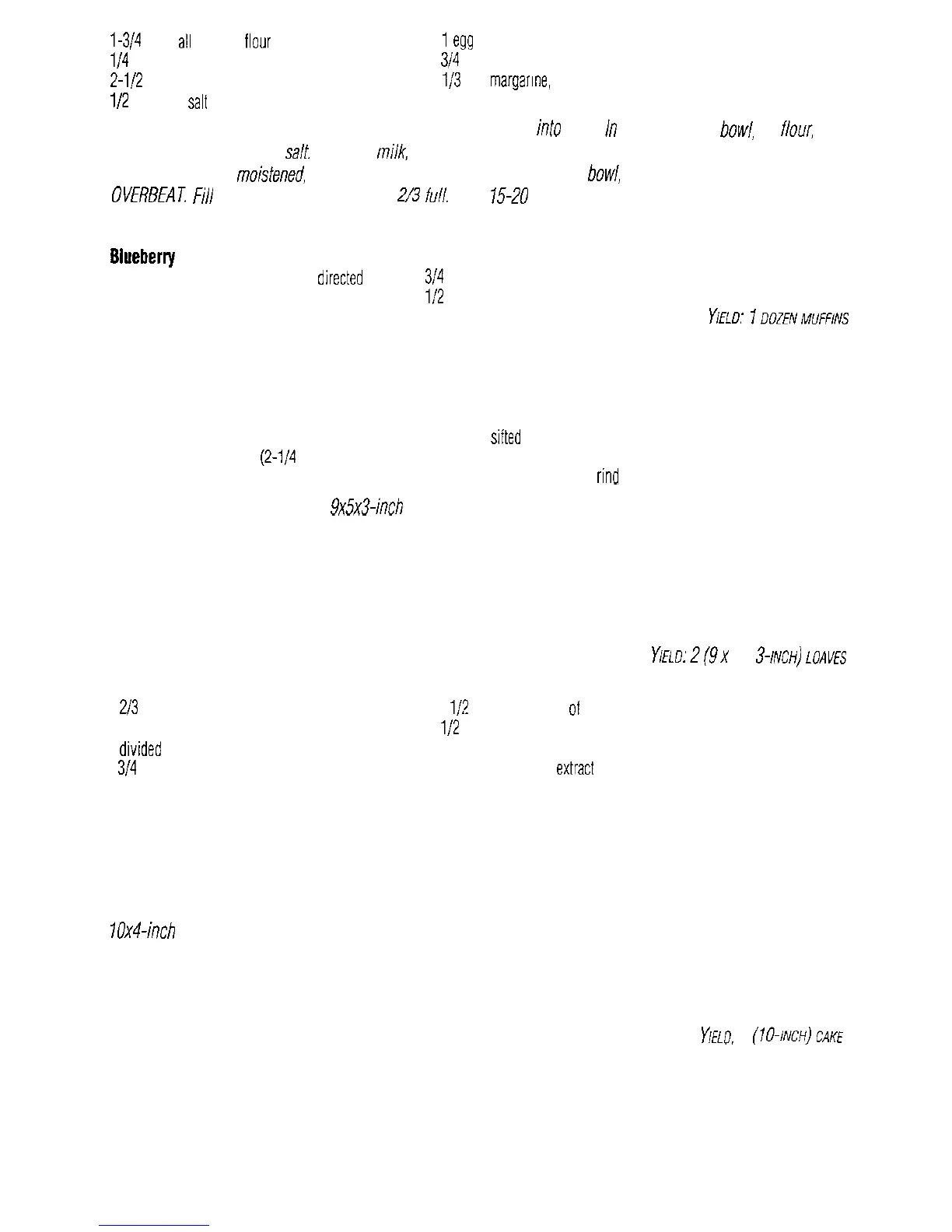 Add egg, milk, and margarine to dry ingredients. Combine on Speed 3 until dry