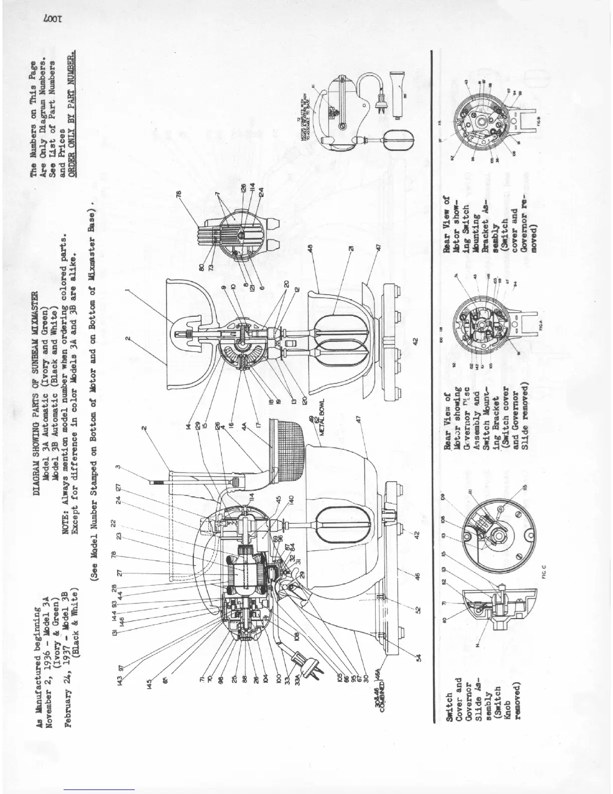 Sunbeam Mixmasters - Sunbeam Mixmaster Model 3 A;3 B Parts Diagrams; Illustrated Parts Breakdown (Model 3 A;3 B)