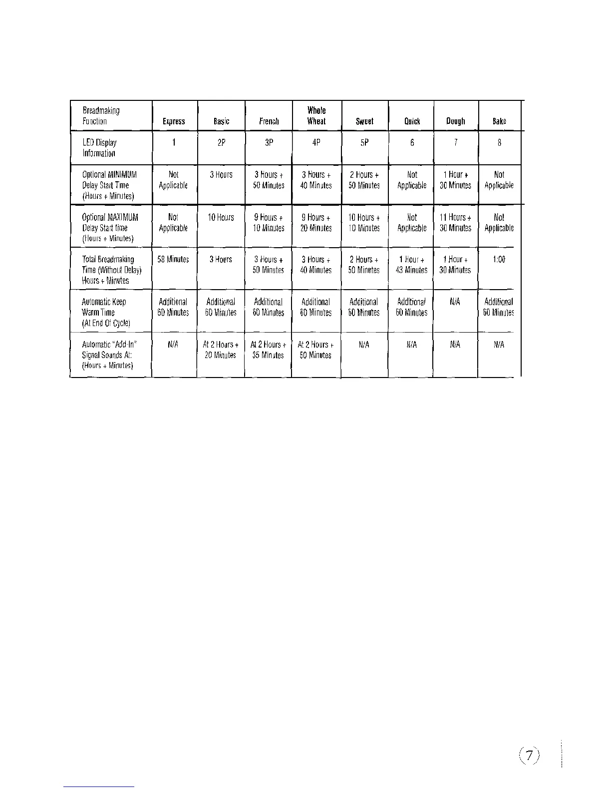 Sunbeam No. 5895 Convection Breadmaker Display/Cycle Functions
