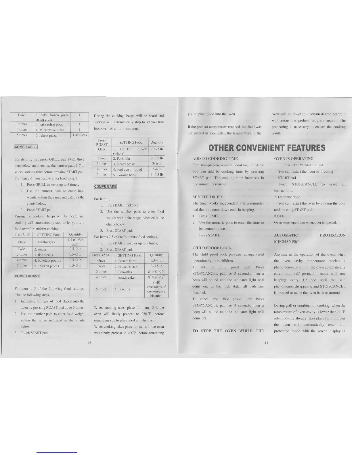 For item I, just press GRILL pad (with three