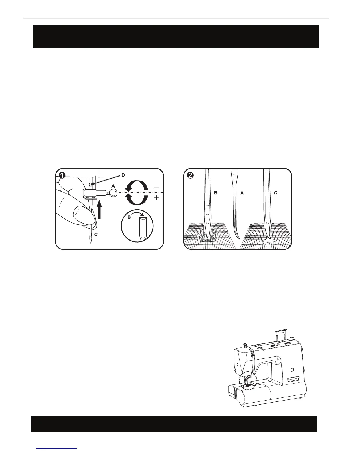 be straight and sharp for smooth sewing. Replace the needle (2) if it is