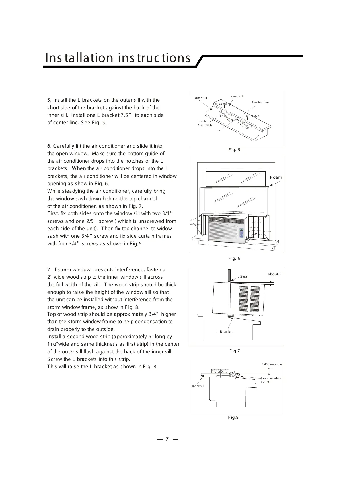 brackets, the air conditioner will be centered in window
