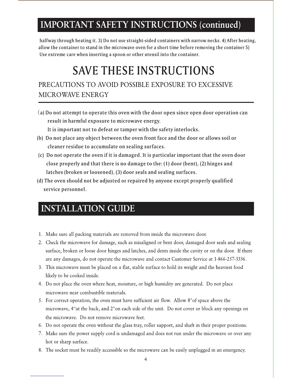 Sunbeam SM0701A7E - Important Safety Instructions (continued); Precautions to Avoid Excessive Microwave Exposure; Installation Guide; Installation Requirements