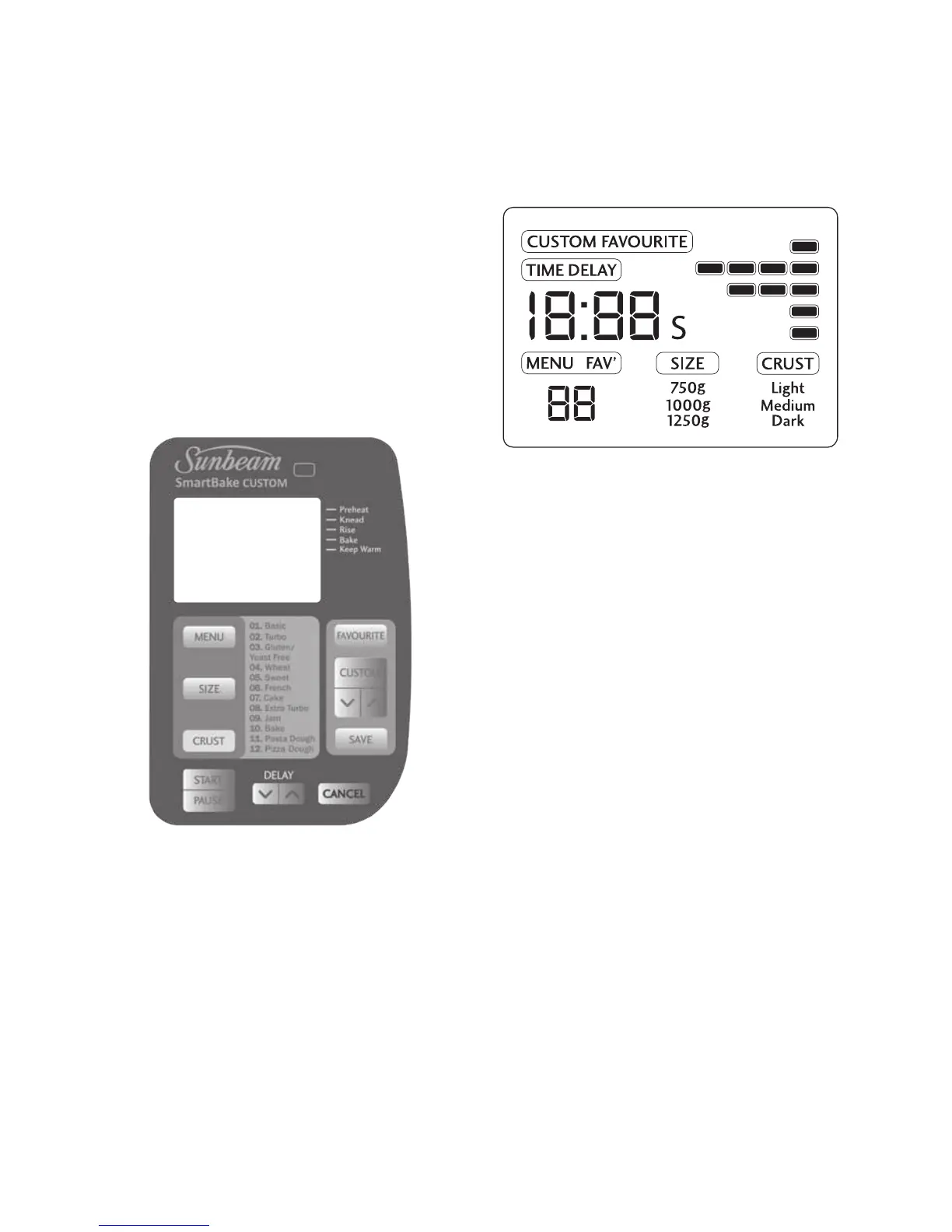 crust colour - Light, Medium or Dark.
