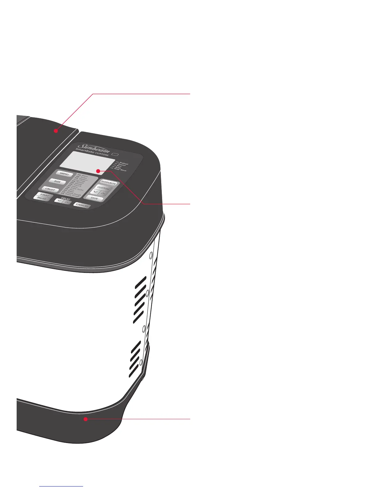 choice of 3 crust settings to suit any size