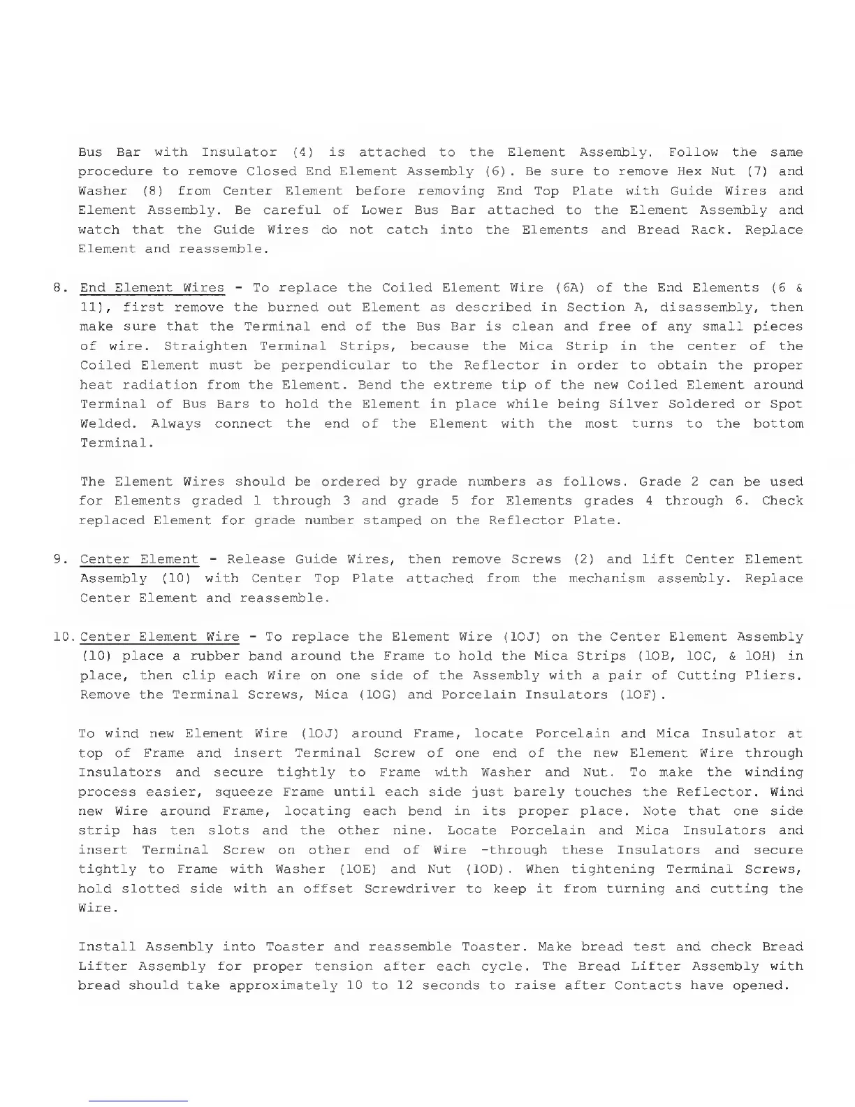 Element Assembly. Be careful of Lower Bus Bar attached to the Element Assembly and