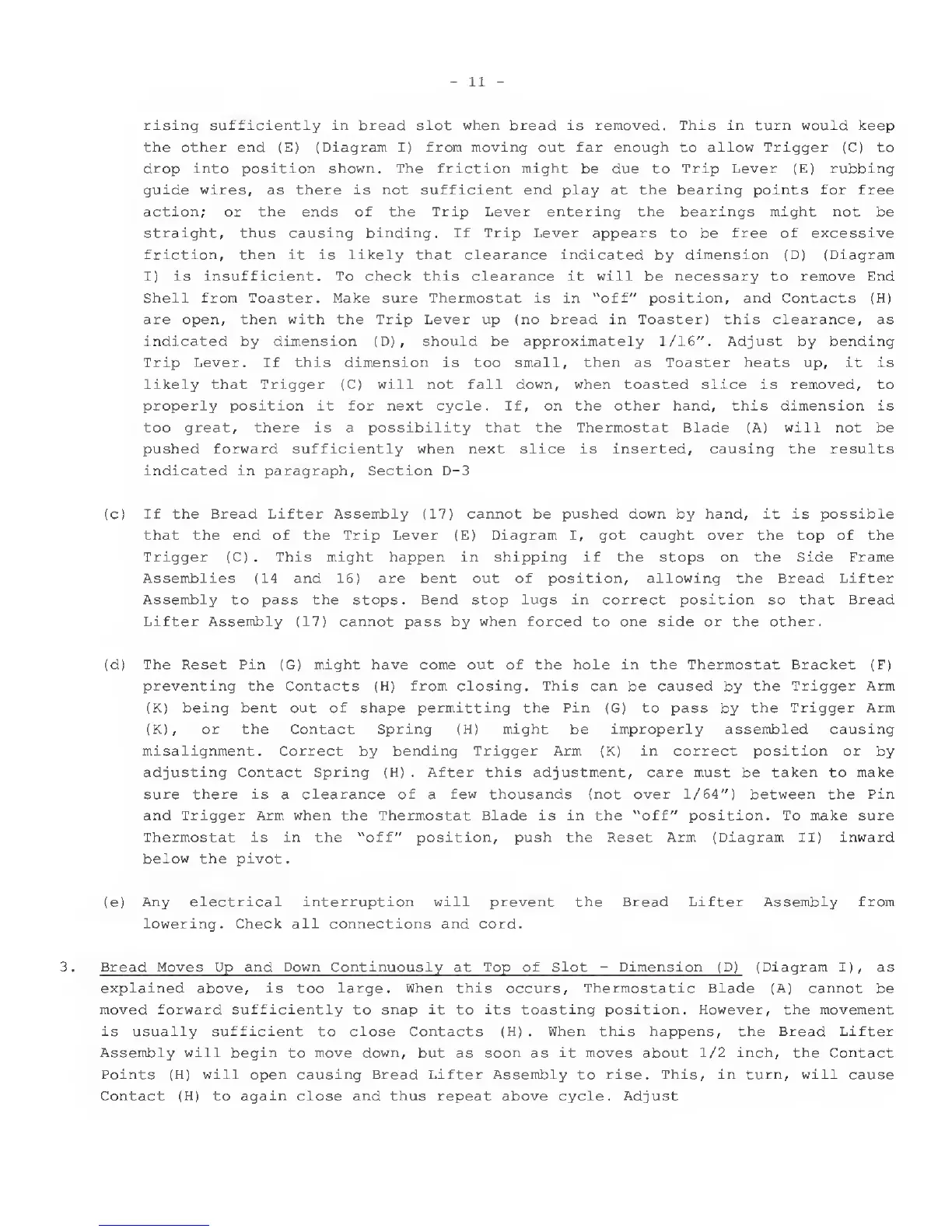 is usually sufficient to close Contacts (H) . When this happens, the Bread Lifter