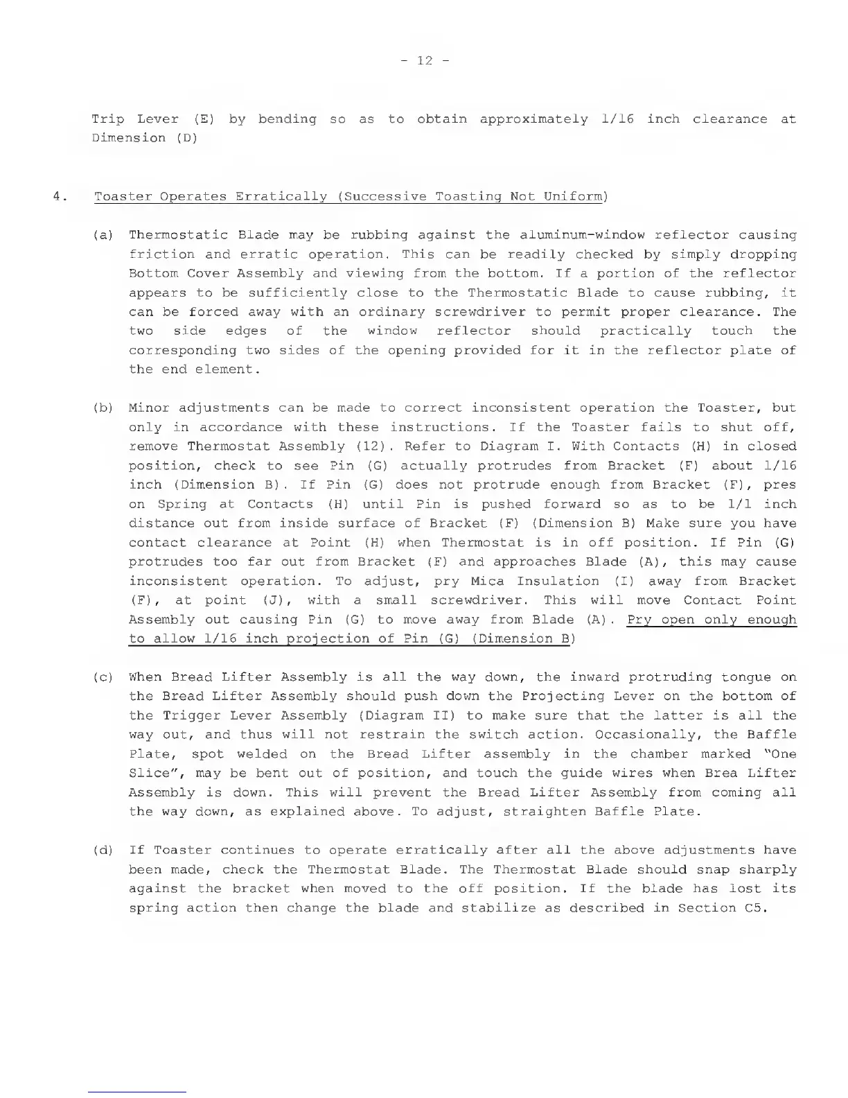 4 . Toaster Operates Erratically (Successive Toasting Not Uniform