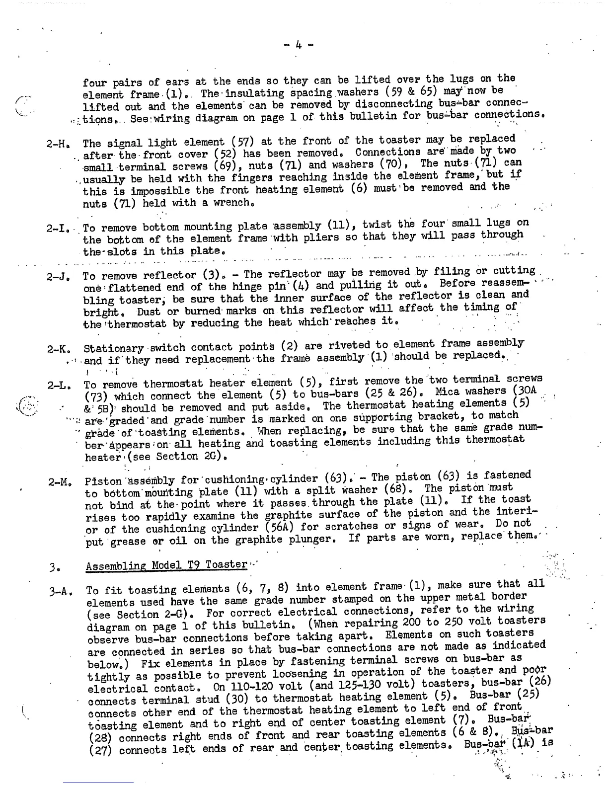 diagram on page 1 of this bulletin. (When repairing 200 to 250 volt toasters