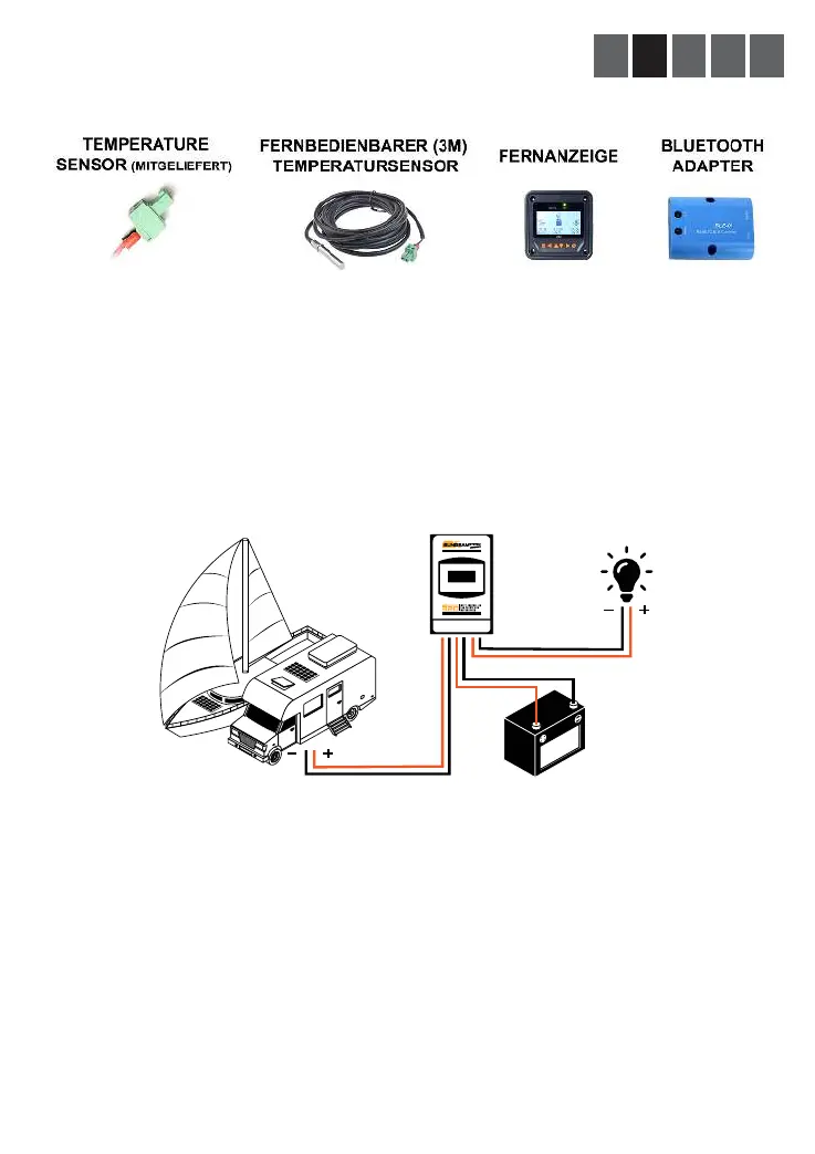 Optionales Zubehör, die Fernanzeige oder der Bluetooth-Adaptere sollten über das mitgelieferte