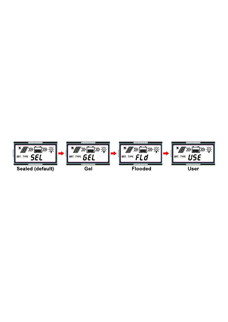 Vaihe 2: Selaa saatavilla olevia esiasetettuja akkutyyppejä painamalla SELECT-nappia.
