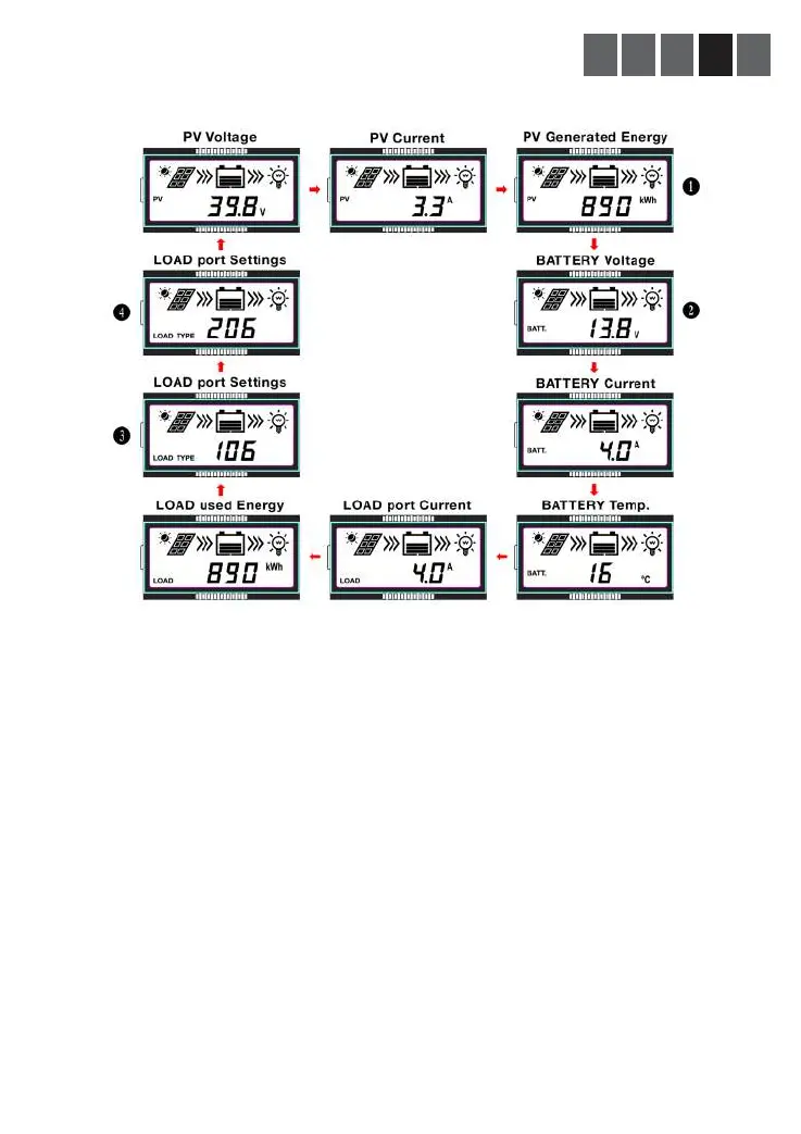 Status informatie wordt continu weergegeven op het LCD scherm. Er wordt automatisch doorgewisseld