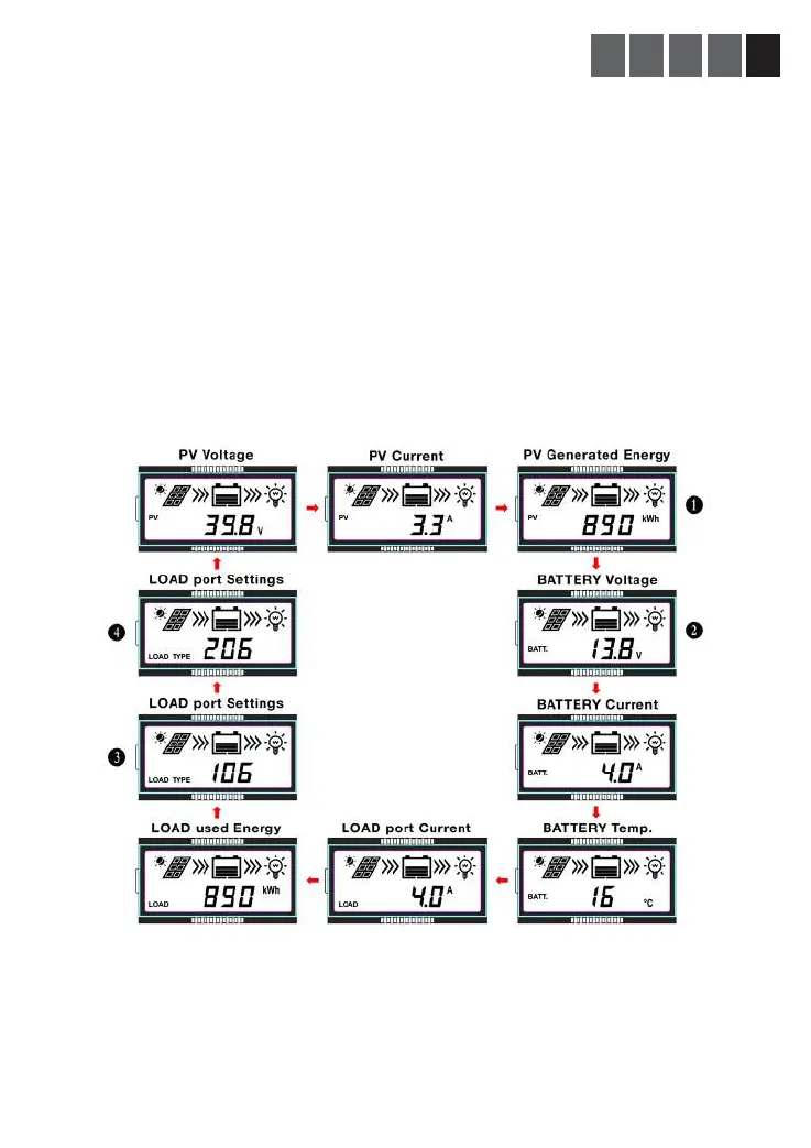 ihop med ”PV ström” som visar ström mellan solpanel och regulator.