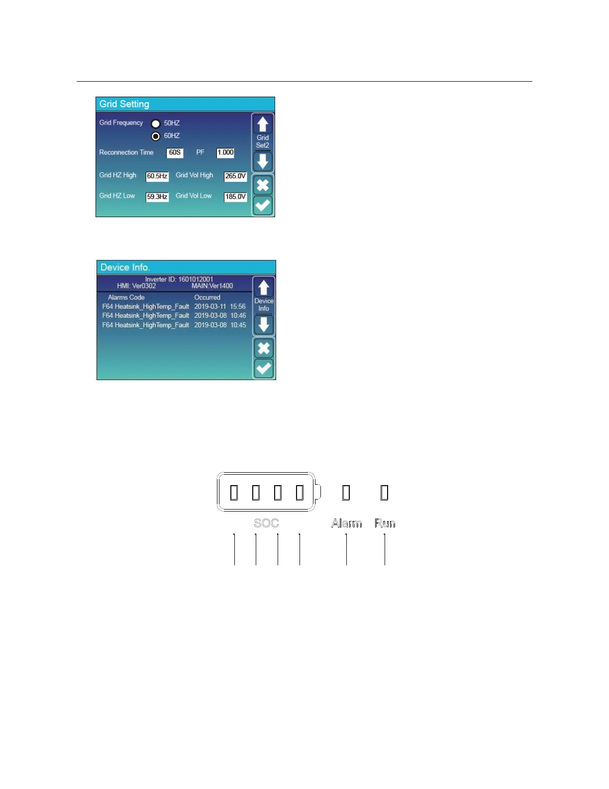 The SOC and running status of the battery pack can be checked through the LED status indicator on the battery