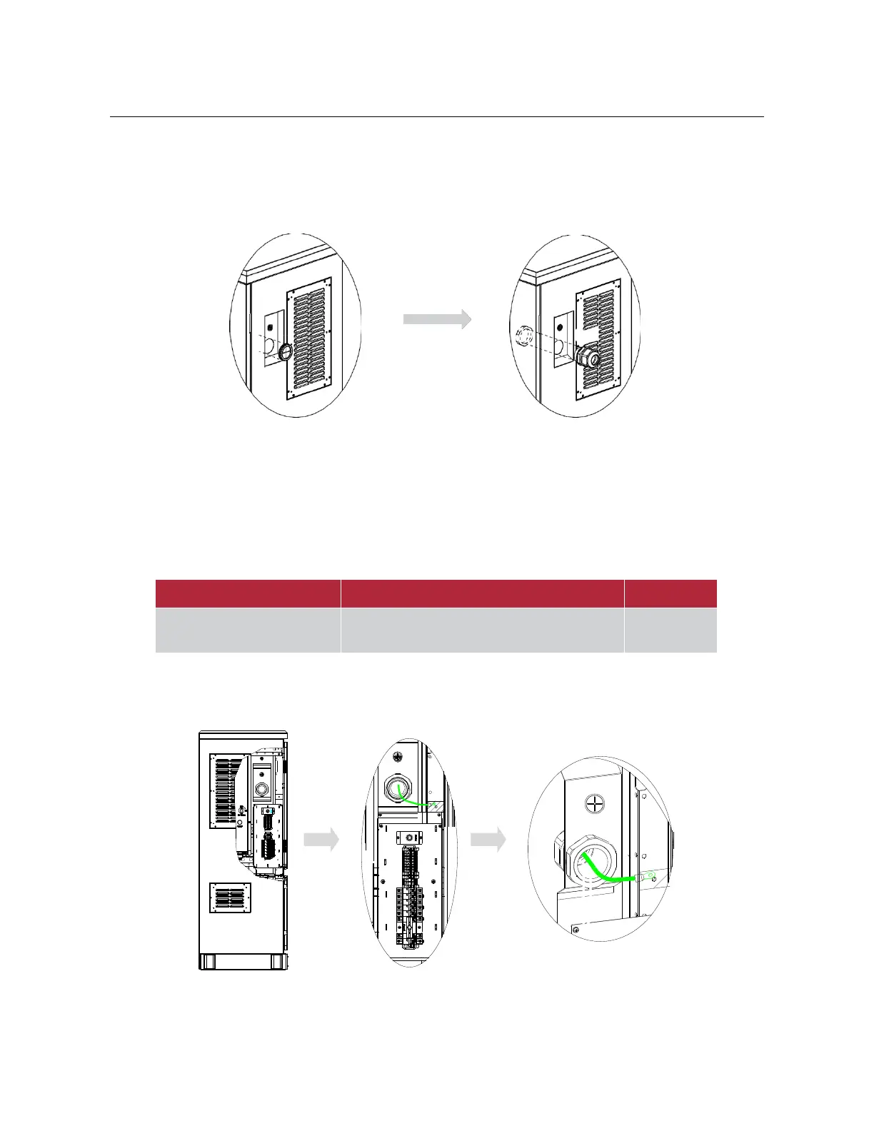 Before cable connection, remove the protective coil on the cabinet and replace it with the waterproof cable gland.