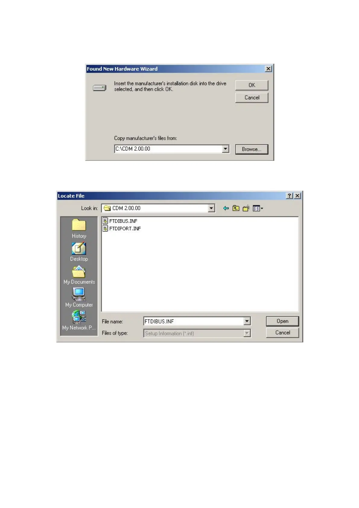 above and click "Open", then click "OK". The PC auto selects the correct INF file, in