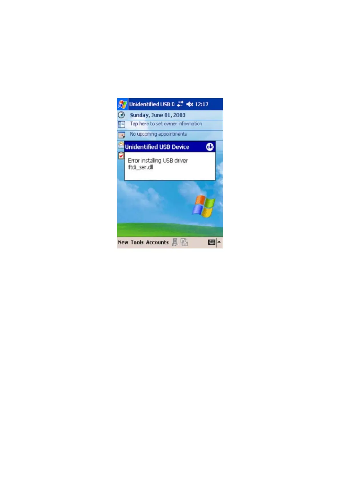 3. "Error installing USB driver ftdi_ser.dll" message