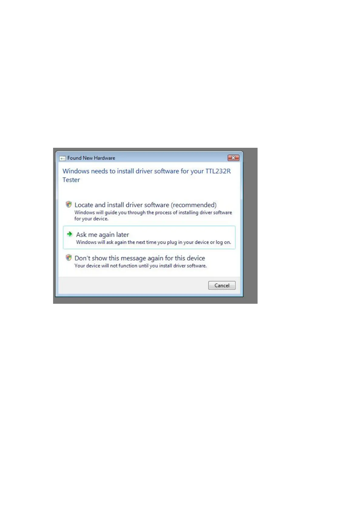 will appear. Note: the text “TTL Tester” is replaced with the description of the customer