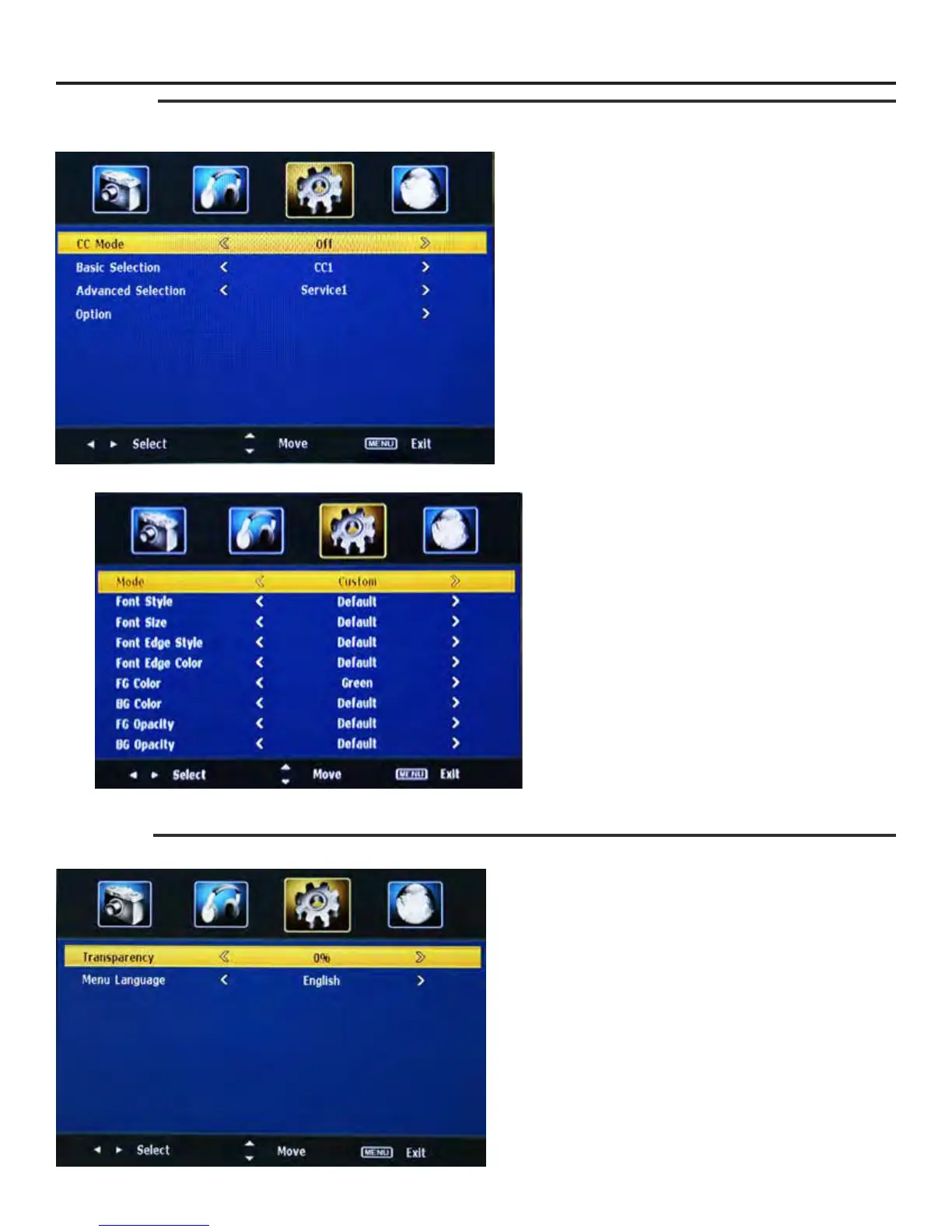 Closed Caption-OptionSub-Menu