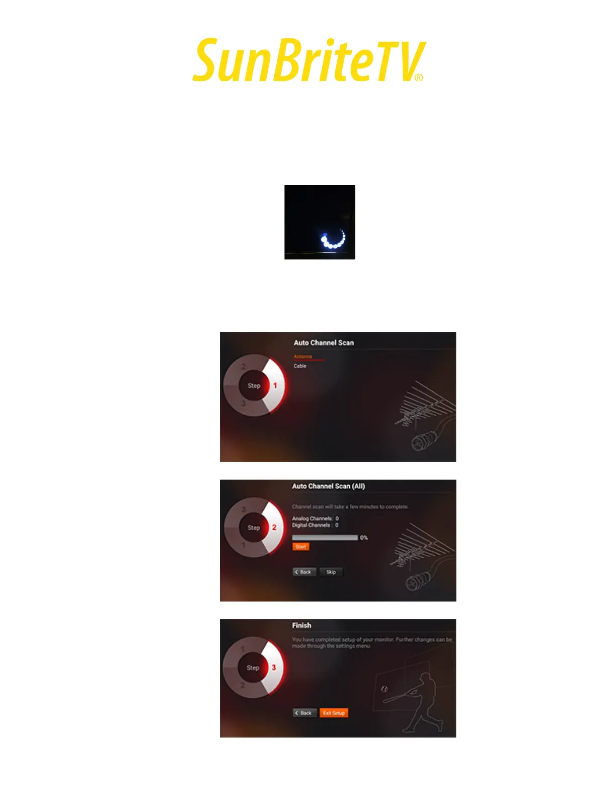 1. Exit the channel scan menu by pressing Enter on the remote on the Antenna, then