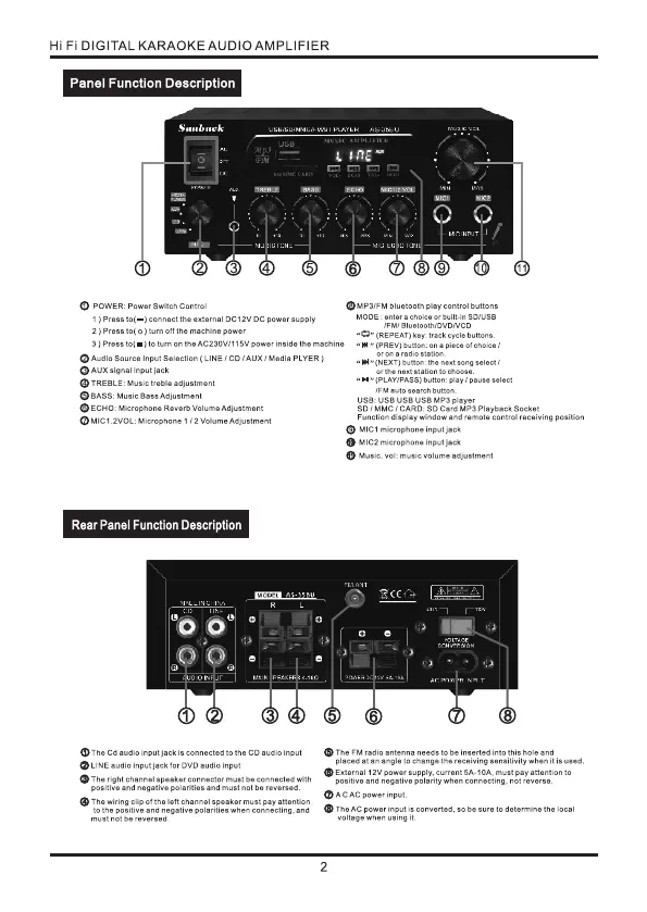 Sunbuck AS-35BU - Front and Rear Panel Functions; Front Panel Controls Overview; Rear Panel Connectivity