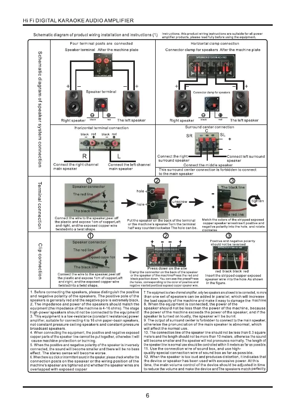 Sunbuck AS-35BU - Speaker Wiring and Connection; Speaker Connection Methods; Wiring Installation Notes