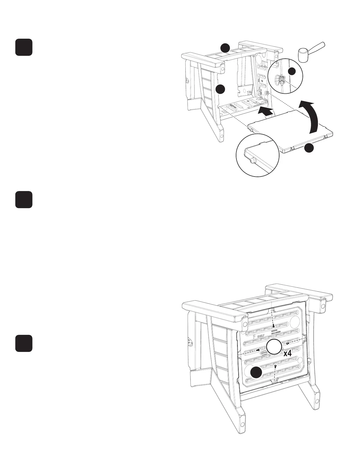 Fixez la tablette (F) au cadre de la chaise à l’aide de