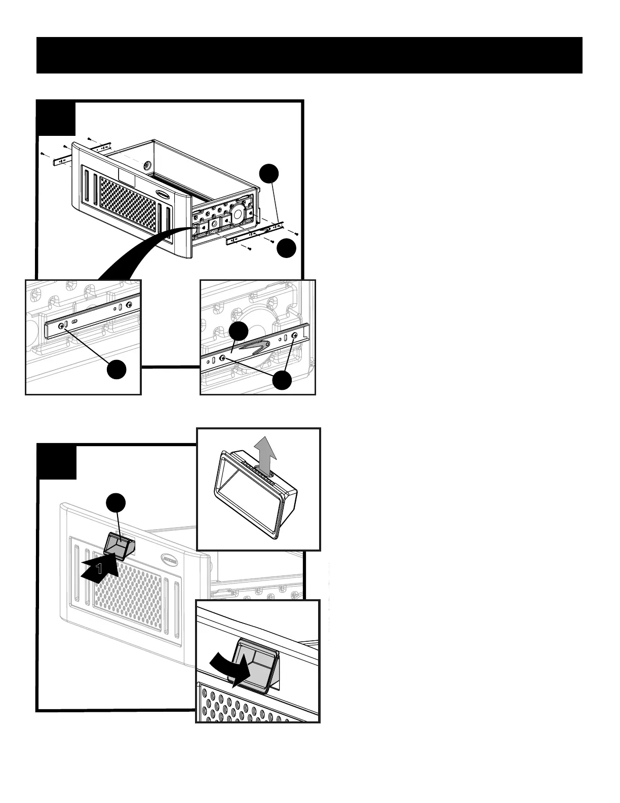étroites des glissières de tiroir (X) de chaque côté du tiroir à l’aide de 6