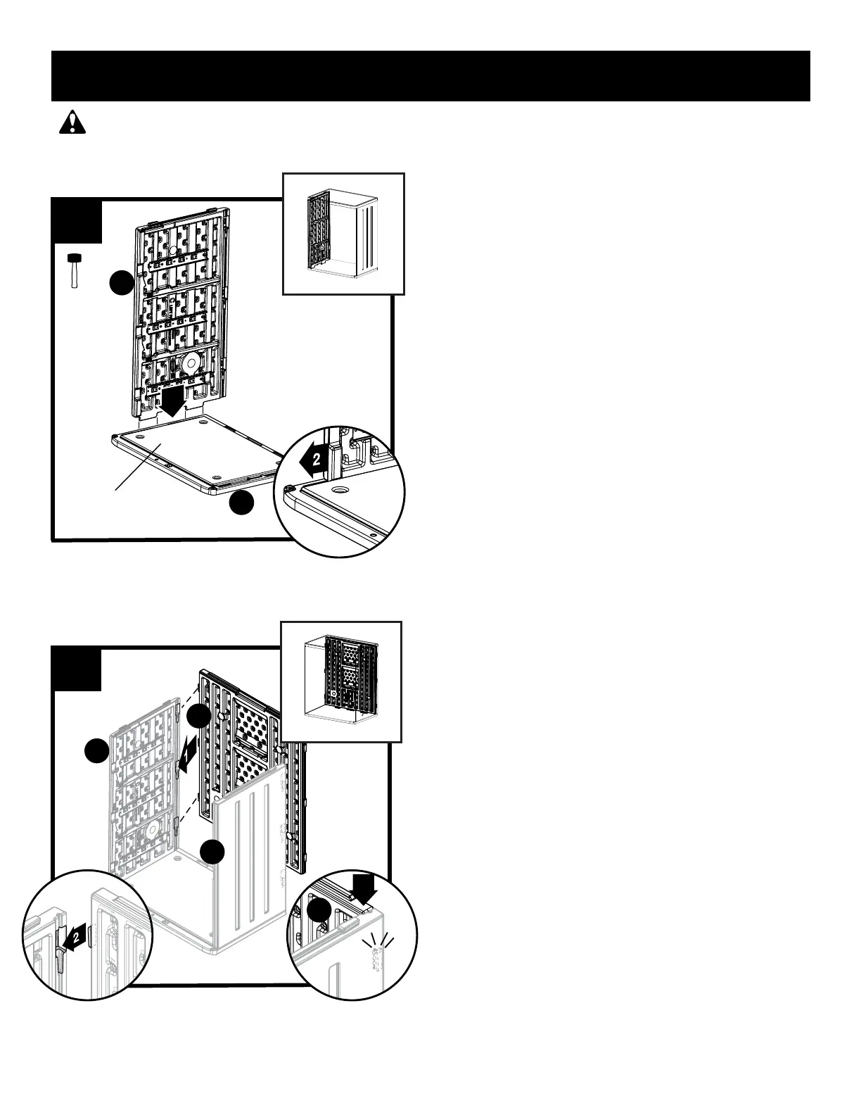 Make sure all tabs are engaged before locking panels together/ Vérifier que toutes les languettes sont correctement introduites