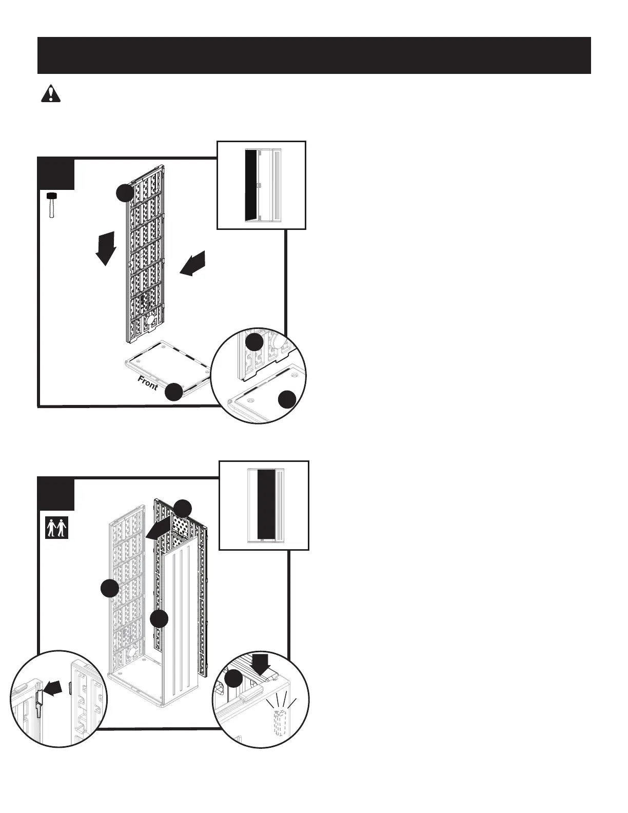 All tabs should be engaged before locking panels together in steps 1-3/ Vérifier que toutes les languettes sont correctement