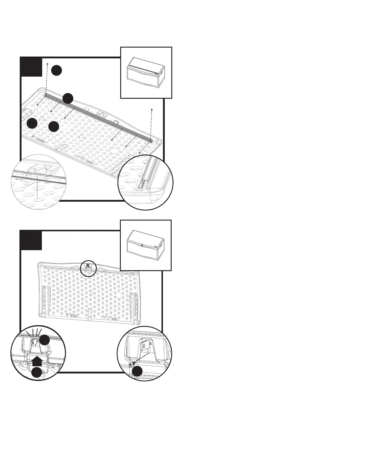 Attach lid bracket (F) to lid (E). Attach through pre-drilled holes