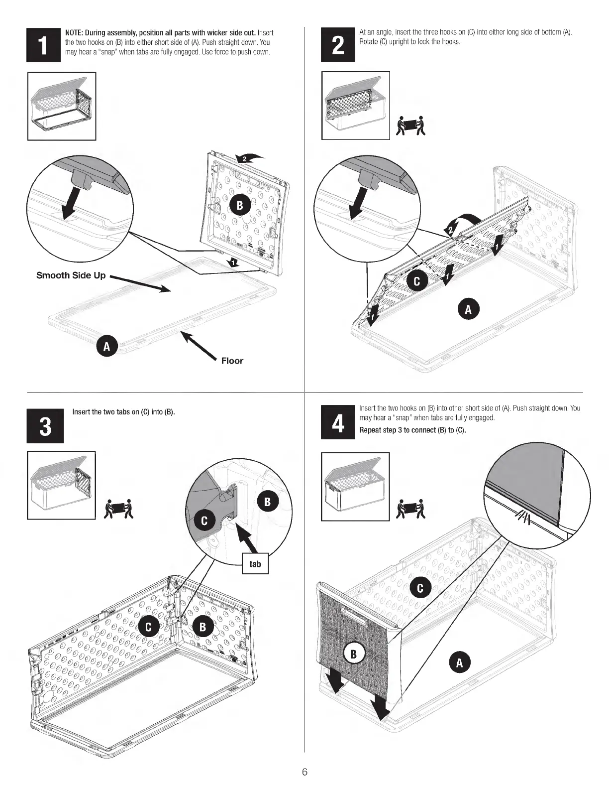 Suncast BMDB134004 - Assembly Steps 5-8; Attaching Front;Back Panels and Lid Bracket