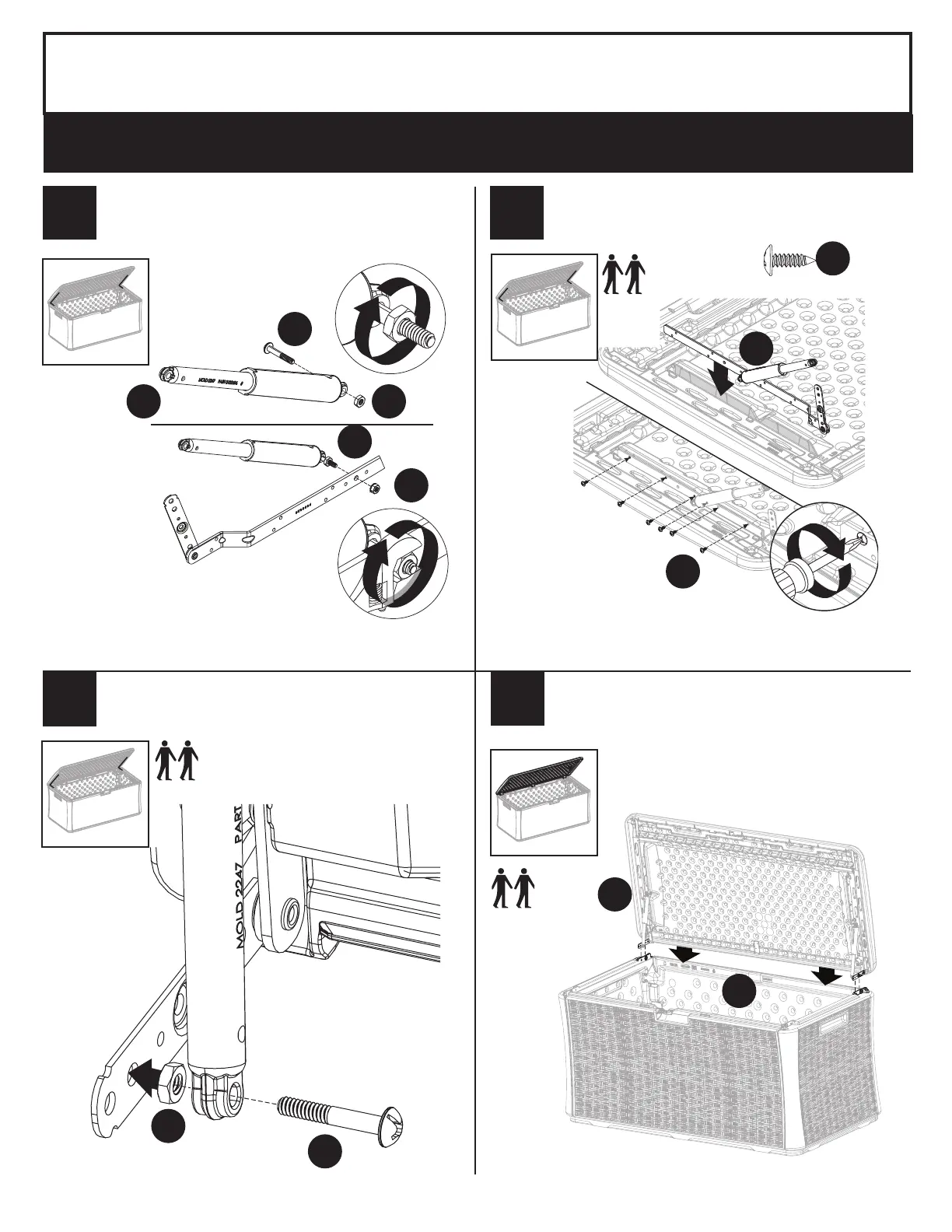 Lower hinge to lid panel (E). Nut should nest into pocket on lid. Attach